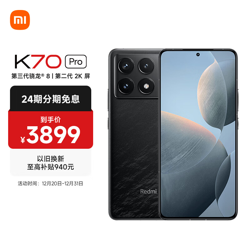 Redmi K70 Pro 第三代骁龙? 8 澎湃OS 第二代2K屏 120W+5000mAh 16GB+512GB 墨羽 小米红米K70 Pro 手机 价格:3899.00元!