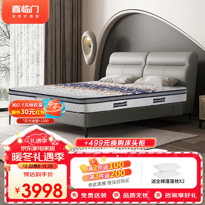 喜临门乳胶独袋弹簧3D椰棕床垫+头层牛皮软床 蝶梦+夜曲Dream1.8x2米价格:6698.00元!