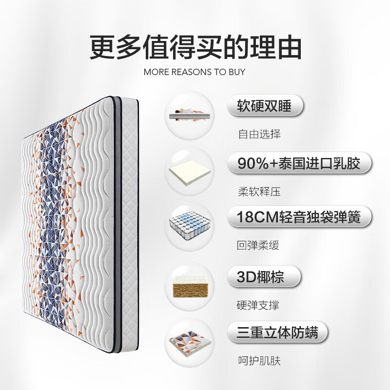 3、好多朋友说线上购买不行,但我不信邪,我决定试一试,没想到以这个价格买回来的床垫比线下2000多还要好,以后就在线上购物了,方便性价比高!