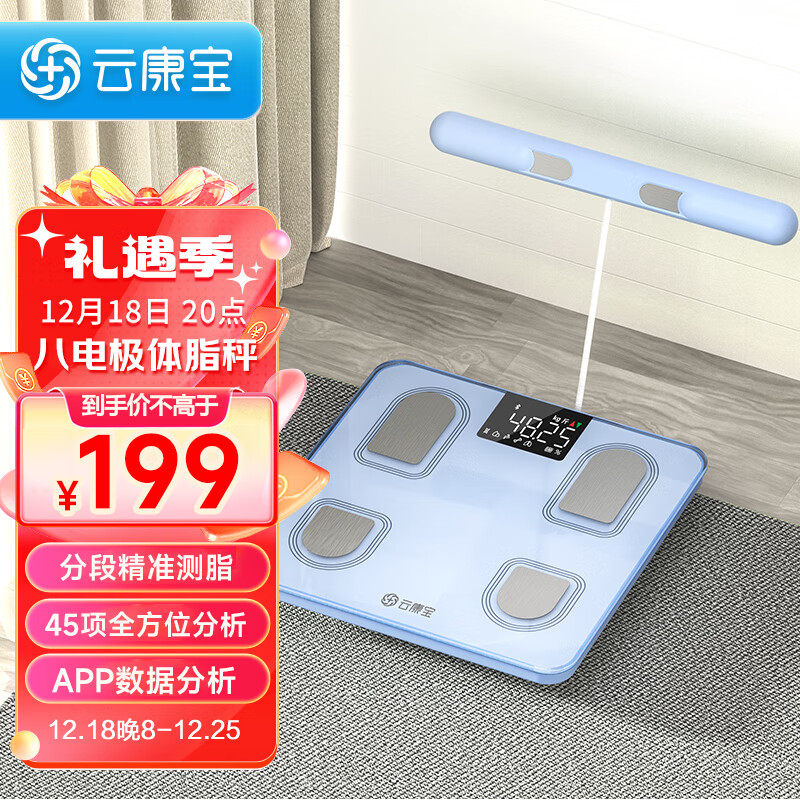 云康宝 体脂秤八电极专业体脂称体重秤精准减肥用电子秤智能测量仪/天空蓝价格:299.00元!