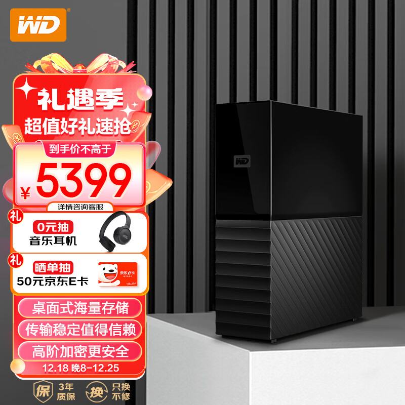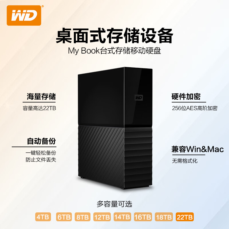 西部数据(WD) 22TB 移动硬盘 USB3.0 桌面存储 My Book 3.5英寸 大容量 机械硬盘 外置外接 加密存储 兼容Mac价格:5399.00元!