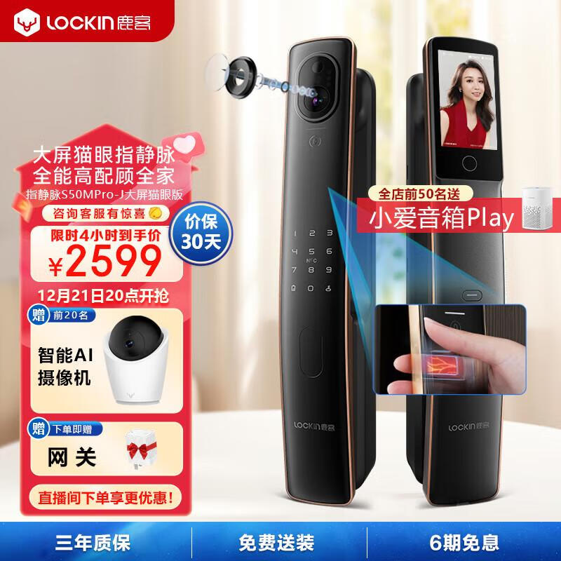 鹿客(LOOCK)S50MPro-H大屏猫眼版 指静脉锁全自动智能门锁密码锁非指纹锁 S50MPro-J琥珀金 大屏猫眼版价格:2749.00元!