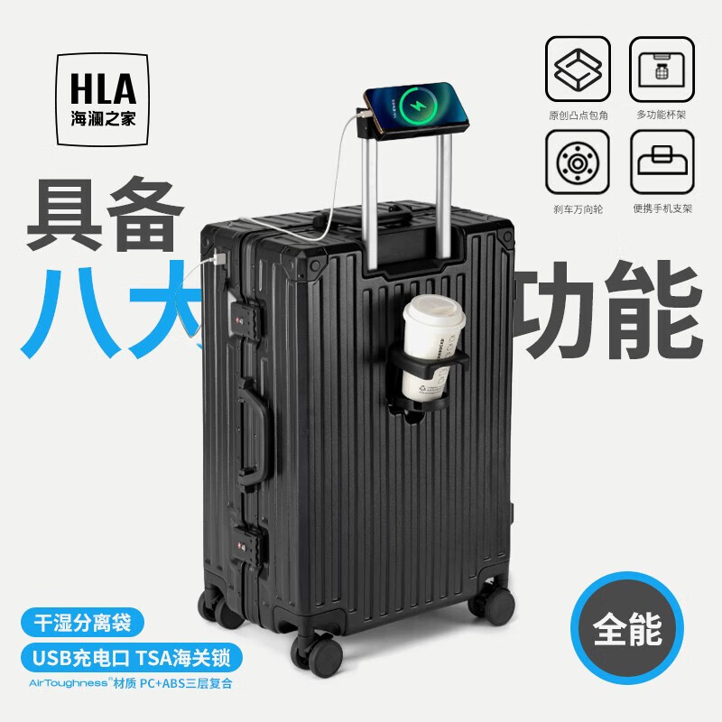 海澜之家(HLA)商务行李箱男多功能拉杆箱旅行登机密码托运皮箱 曜石黑26英寸价格:509.00元!