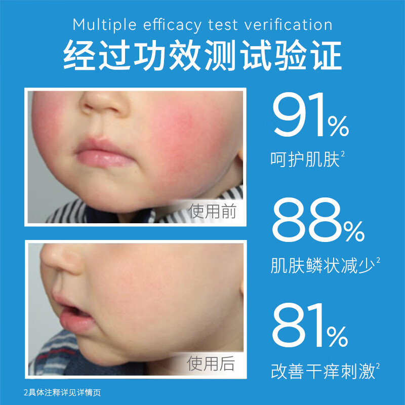 1、宝宝脸上容易长湿疹,好朋友推荐买的这款面霜。产品很温和,淡淡的香味。涂在脸上滑滑的很容易推开。保湿效果很好,特别滋润,第二天早上脸上还是比较湿润的。很大一支,可以用好久。对于掉皮的干燥的皮肤特别友好。。