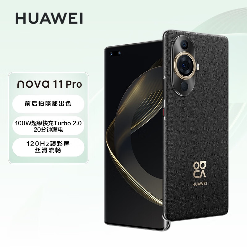 HUAWEI nova 11 Pro 前置6000万人像双摄 后置5000万超感知影像 512GB 曜金黑 华为鸿蒙智能手机价格:3949.00元!