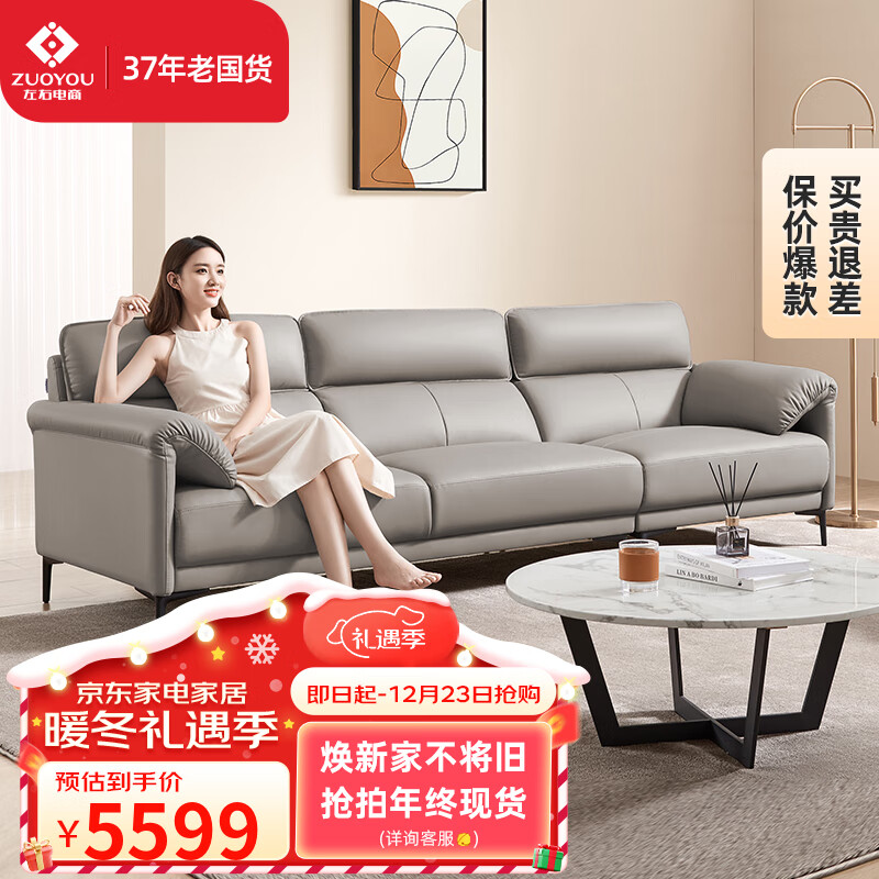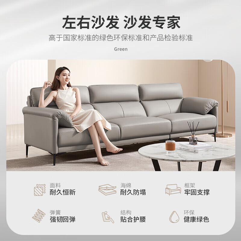 左右沙发现代简约客厅皮艺头层牛皮沙发DZY5161三人位【Z1012影青灰】价格:6699.00元!