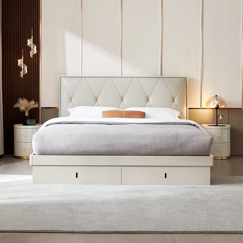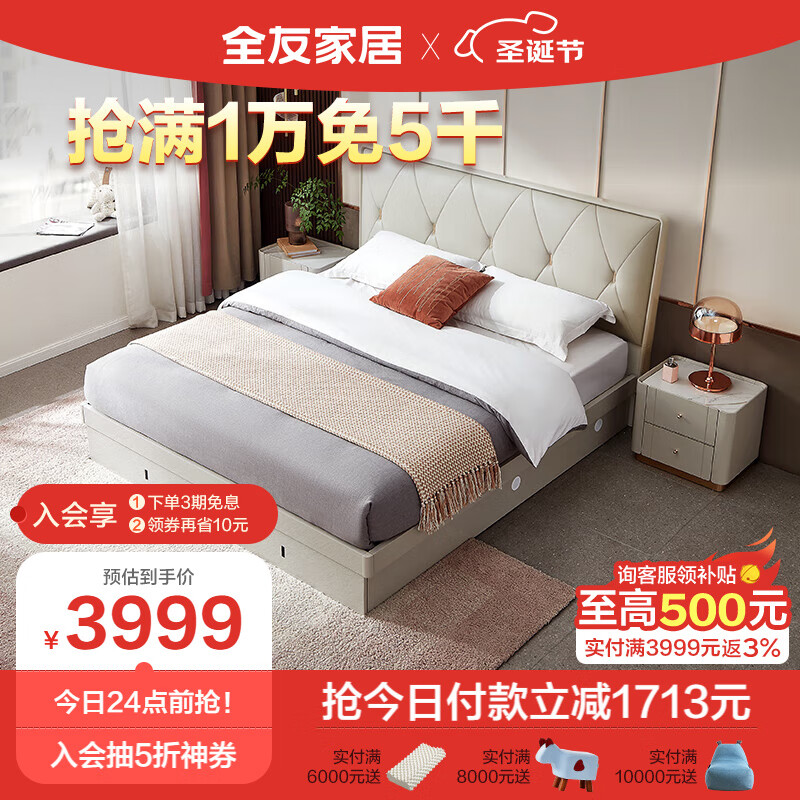全友家居 床 轻奢欧皮软床主卧实木床屏边框高箱储物床127801 1.5m带抽高箱床+床头柜*2+105169Ⅱ床垫价格:5712.00元!