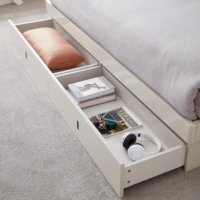 4、超级好看,很百搭的一款,质量也很好,床下带收纳,边上带抽屉很方便。没什么异味。