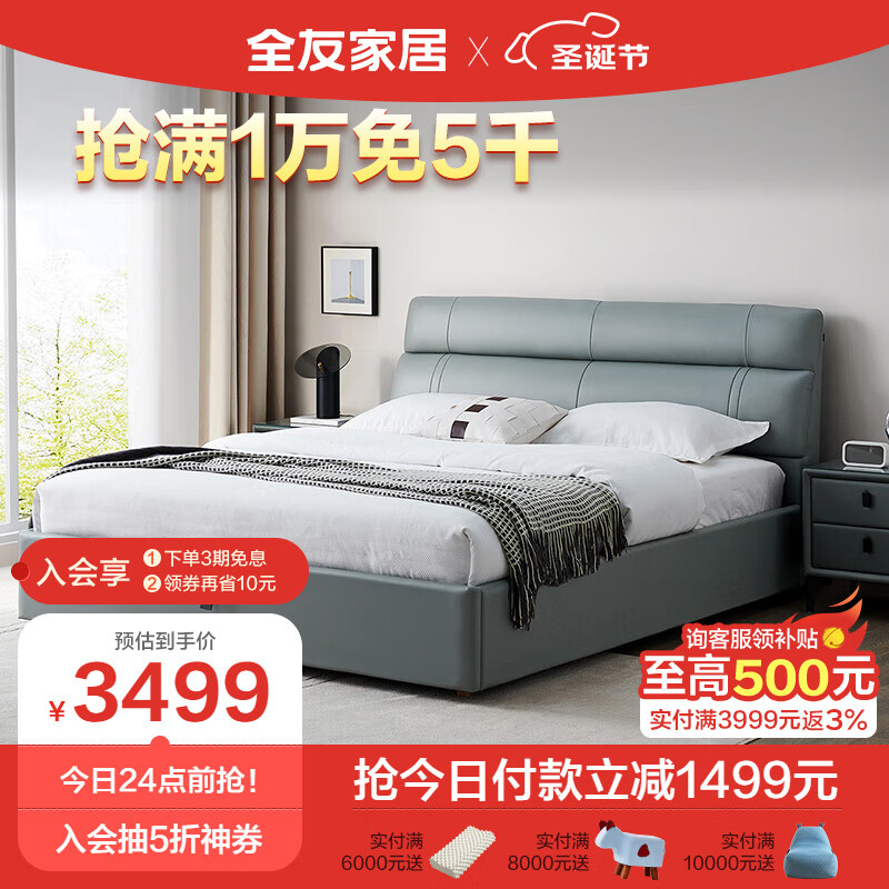 全友家居 进口头层牛皮双人床意式极简1.5米储物高箱床105251B价格:4998.00元!