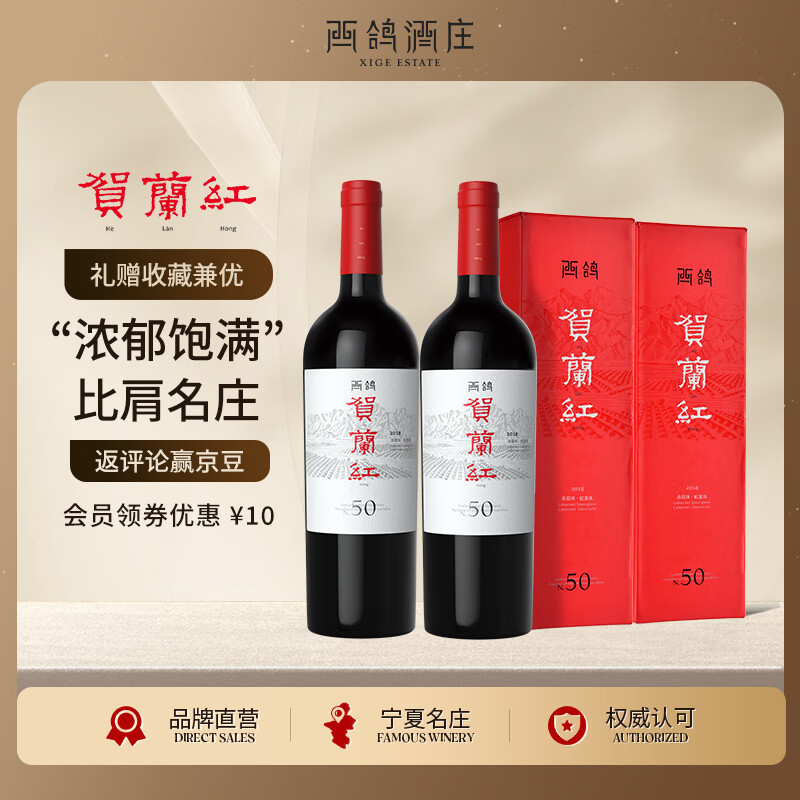 贺兰红西鸽N50老藤干红葡萄酒750ml*2瓶礼盒装 宁夏贺兰山红酒价格:708.00元!