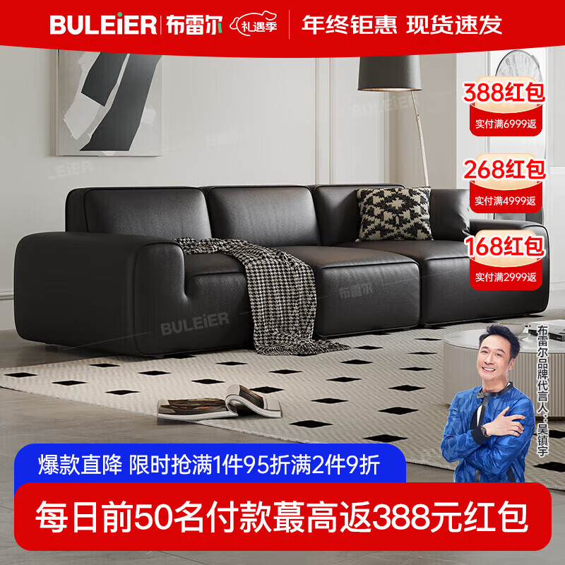 布雷尔(BULEIER)沙发大黑牛豆腐块头层牛皮沙发客厅沙发整装家具价格:2080.00元!