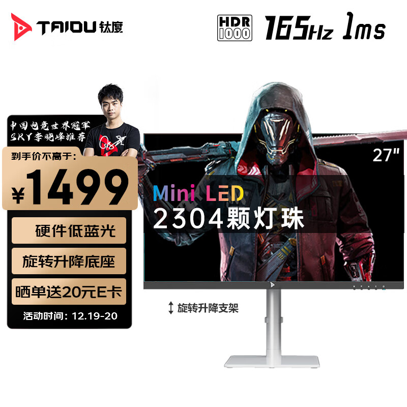 钛度27英寸2K 165Hz Mini LED电竞显示器硬件低蓝光 旋转升降 HDR1000 高色域游戏娱乐电脑显示屏M27NQH-SE价格:1699.00元!