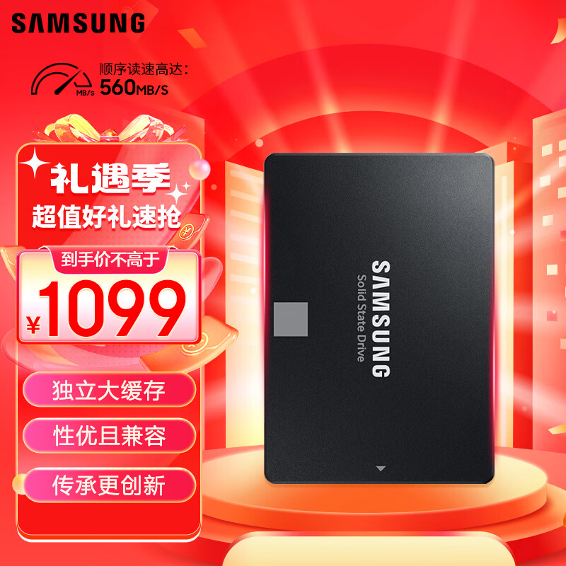 三星(SAMSUNG)2TB SSD固态硬盘 SATA3.0接口 870 EVO(MZ-77E2T0B)价格:1099.00元!