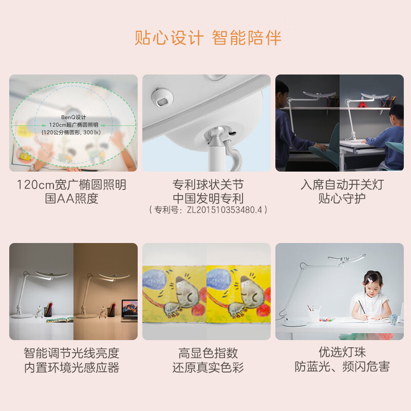 5、京东自营物流很快,赞。明基品牌护眼灯值得信赖,质量很好,功能很多,智能操作,外观款式设计新颖,伸臂后调整孩子学习上方,自动感应光线调整光亮度,护眼效果很好。