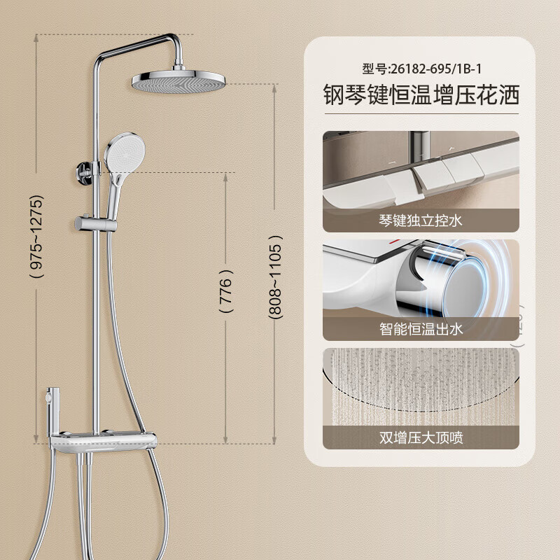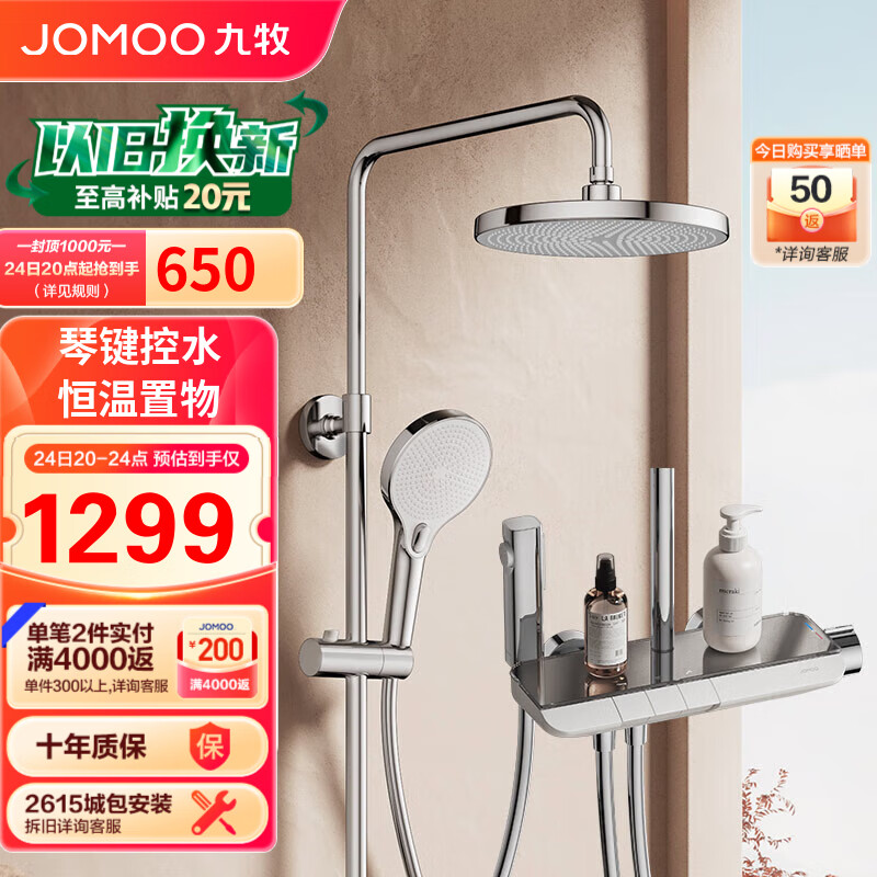 九牧JOMOO恒温花洒全套钢琴按键置物喷枪双增压大顶喷26182-695/1B-1价格:1549.00元!