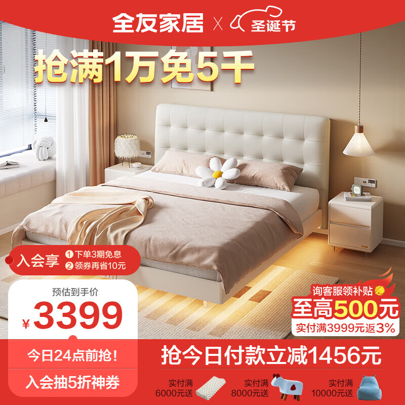 全友家居?床奶油风悬浮床双人床国民家居卧室欧皮软包家用皮床价格:4855.00元!
