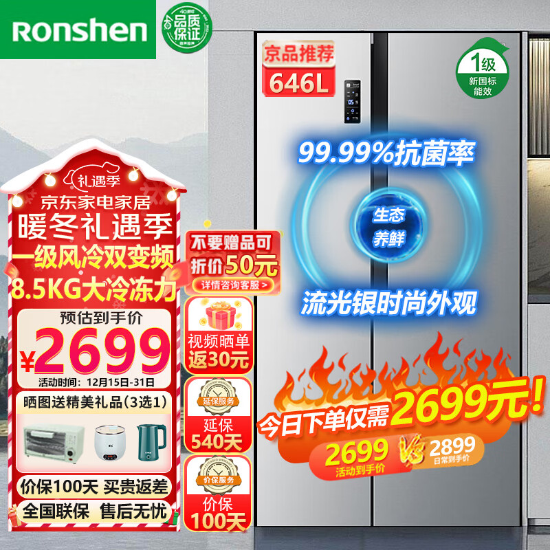 容声(Ronshen)646升对开门冰箱一级双变频风冷无霜智慧精储自然态精致养鲜深冷锁鲜BCD-646WD11HPA价格:2799.00元!