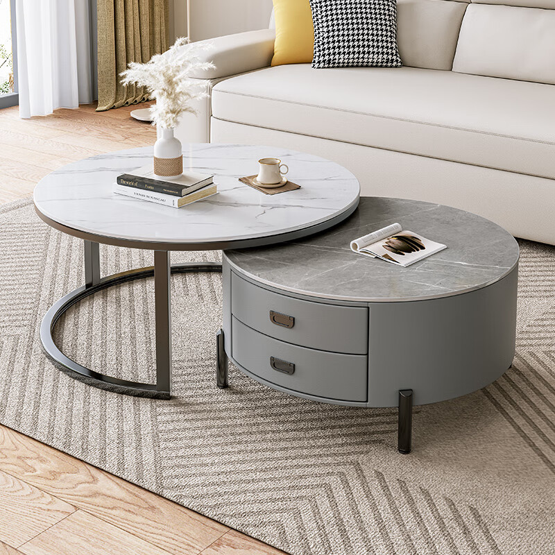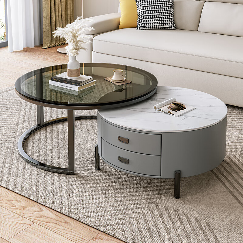 罗森(LUOSEN)茶几 岩板伸缩边客厅家用大小户型圆形茶几桌 80白(玻璃)+60白价格:779.00元!