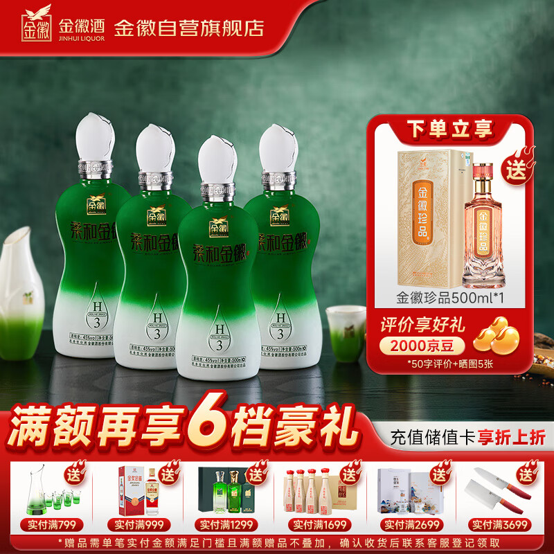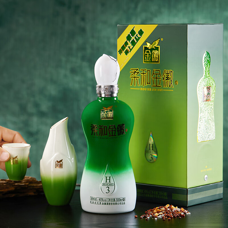 金徽 柔和H3 浓香型白酒 45度 500ml*4瓶 整箱装价格:628.00元!