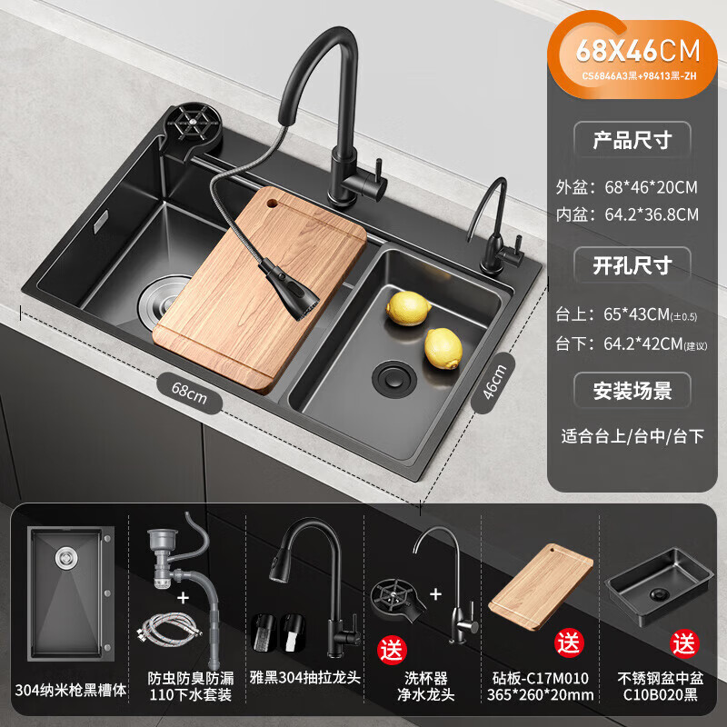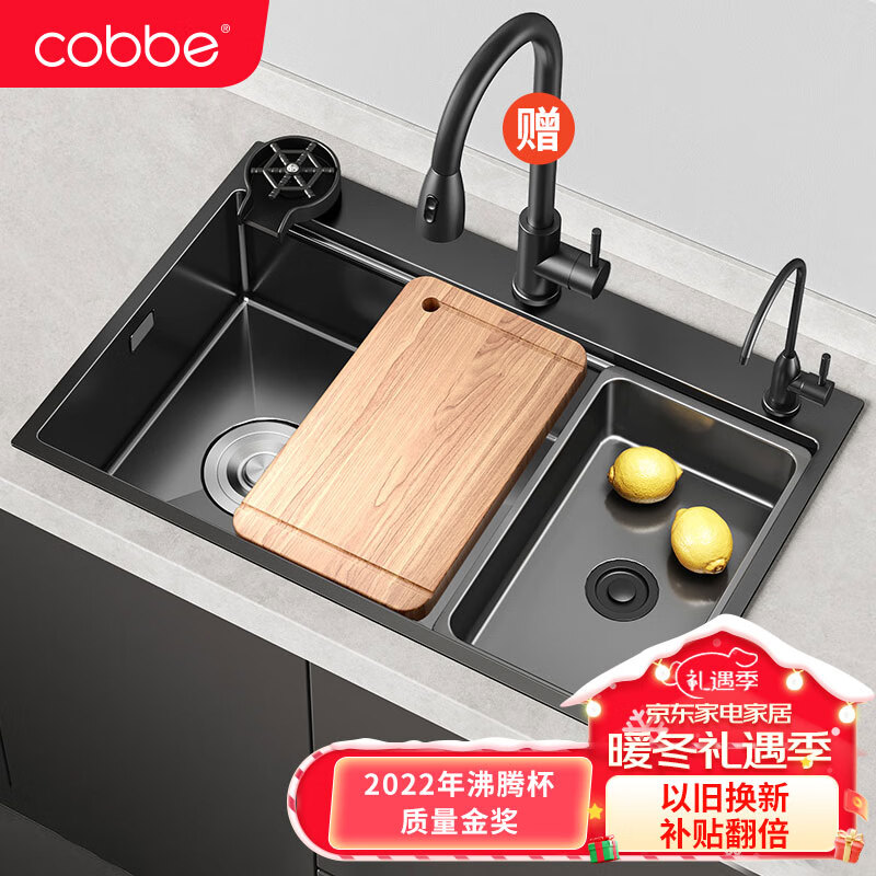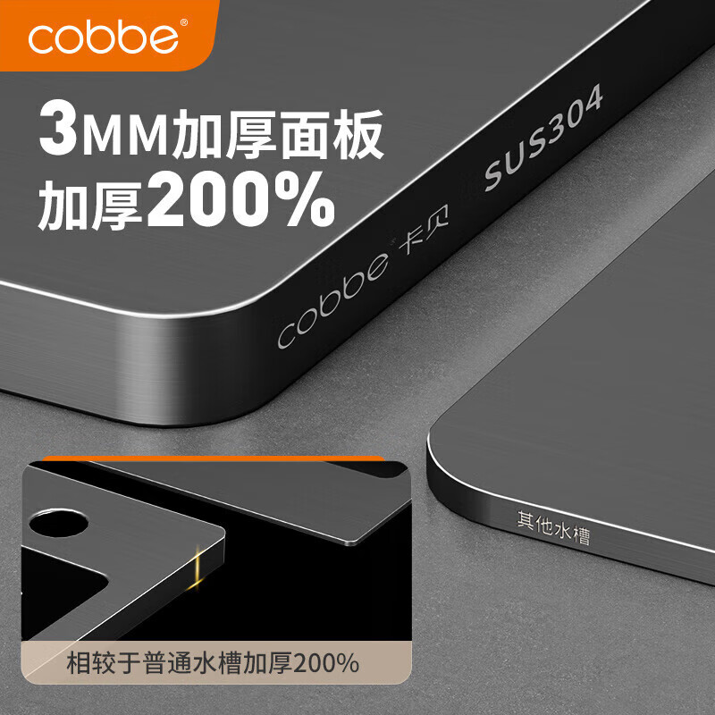 卡贝(cobbe)厨房水槽单槽黑色纳米手工加厚不锈钢洗菜盆台下盆中盆洗碗槽水池价格:1208.00元!
