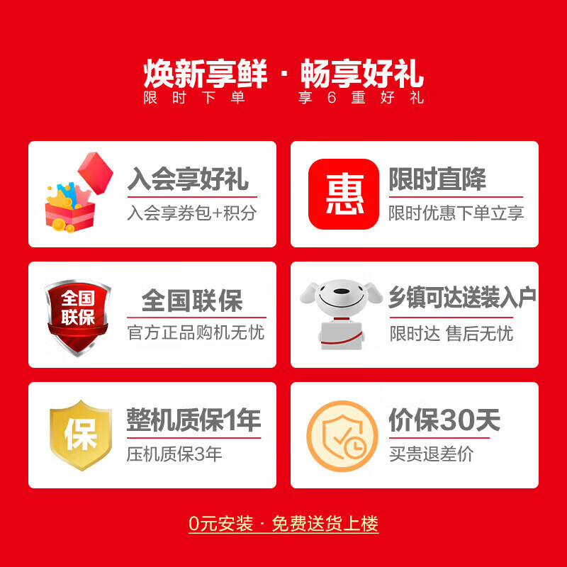 1、外形外观:高大上啊,看起来就特别有质感,很上档次。制冷效果:还没开始用,用一段时间之后再来追评,海尔的,有保障。保鲜效果:一样的,用一段时间再来追评。容量大小:容量很大,够一家人用了,冷冻,冷藏都很大,还带除味的,性价比很高,还是海尔的,点赞。这么大的件也是隔天就送到了,京东快递就是快!