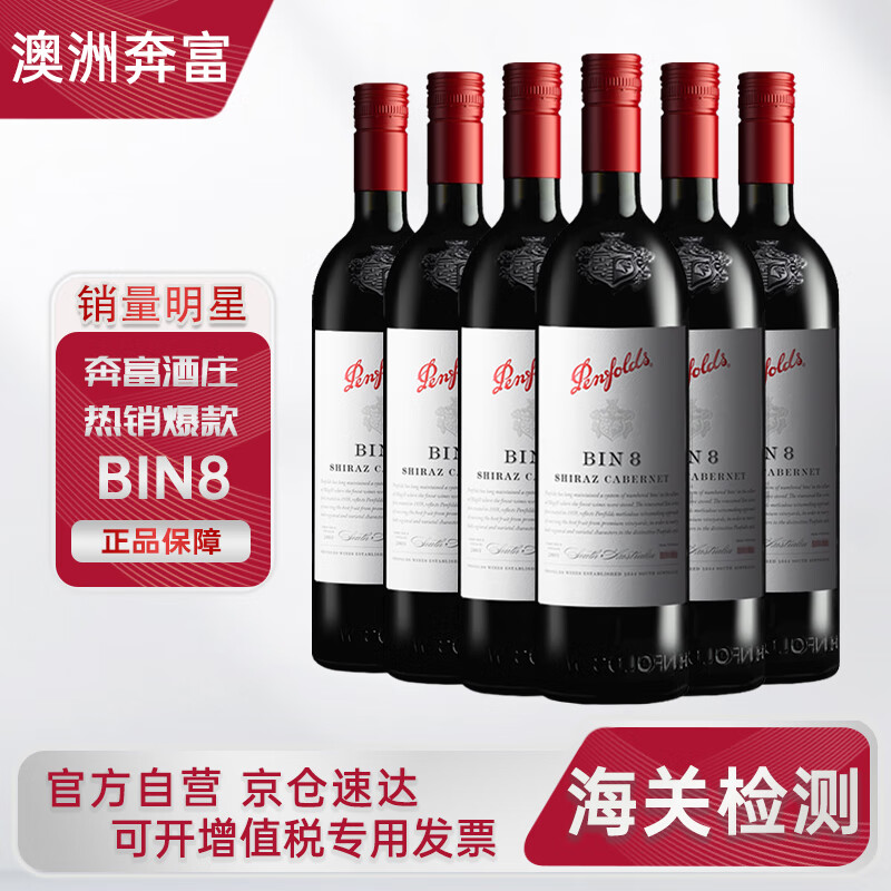 奔富(Penfolds)BIN8设拉子赤霞珠干红葡萄酒 750ml*6支装 澳洲原瓶进口价格:1499.00元!