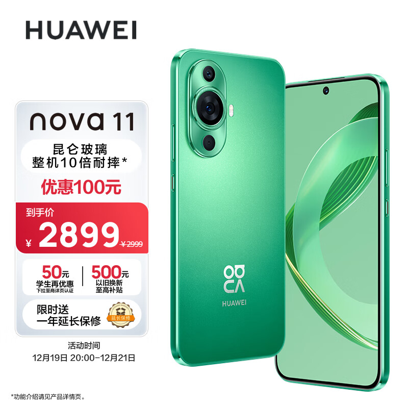 HUAWEI nova 11 超可靠昆仑玻璃 前置6000万超广角人像 256GB 11号色 华为鸿蒙智能手机价格:2899.00元!