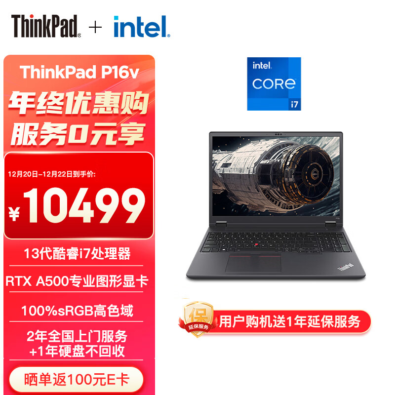 ThinkPad联想 P16v 13代酷睿i716英寸高性能设计师工作站i7-13700H 16G 512G RTXA500 高色域 商务办公本价格:10499.00元!