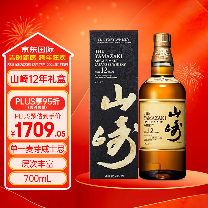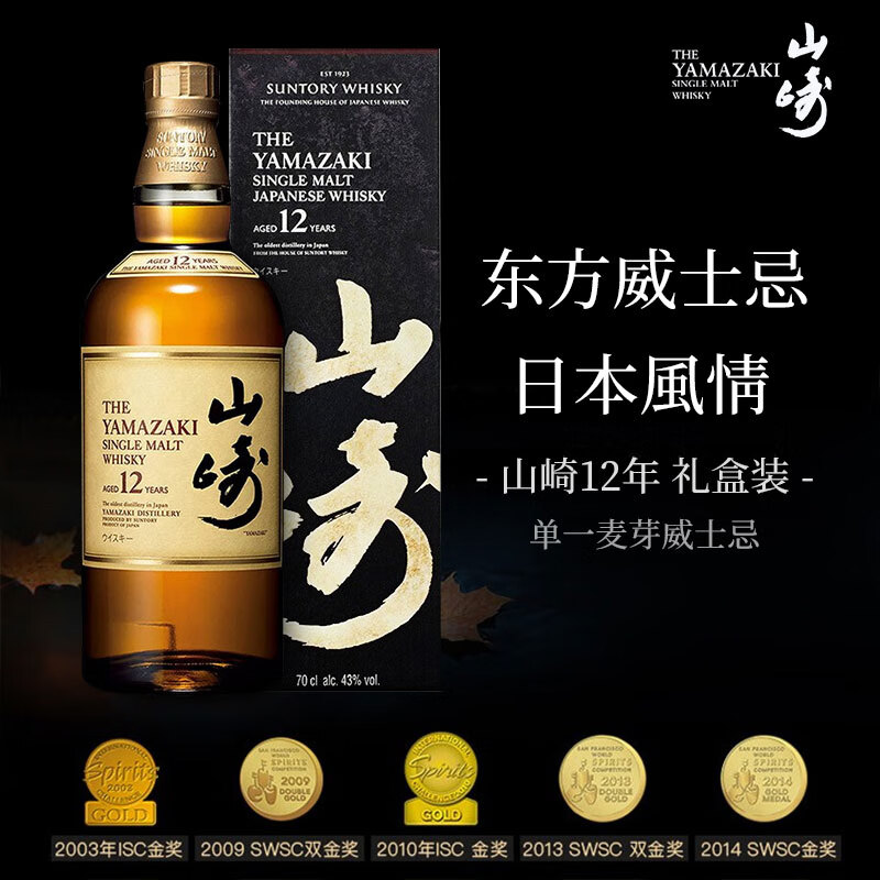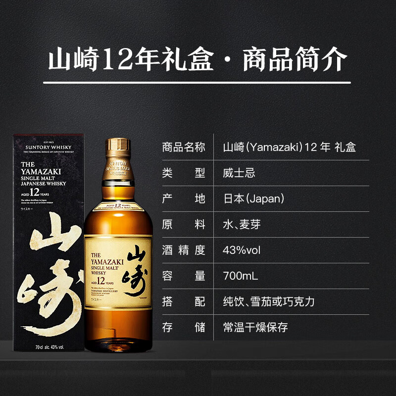 山崎(Yamazaki)12年 单一麦芽威士忌 700ml 三得利 日本威士忌 进口洋酒(礼盒款)价格:1799.00元!
