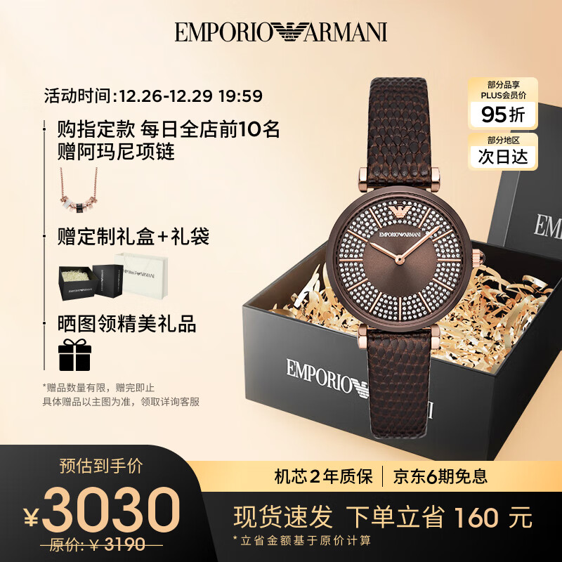 安普里奥·阿玛尼(Emporio Armani)手表女 满天星系列棕色镶钻表盘蜥蜴纹皮带石英女士腕表 AR11565价格:3130.00元!