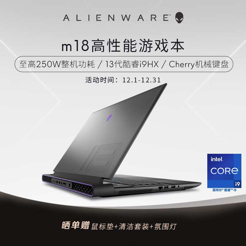 外星人(Alienware)全新 m18 18英寸高端游戏本13代酷睿i9 64G 2T RTX4090 165Hz 高刷屏高性能笔记本电脑1996QB价格:50969.00元!