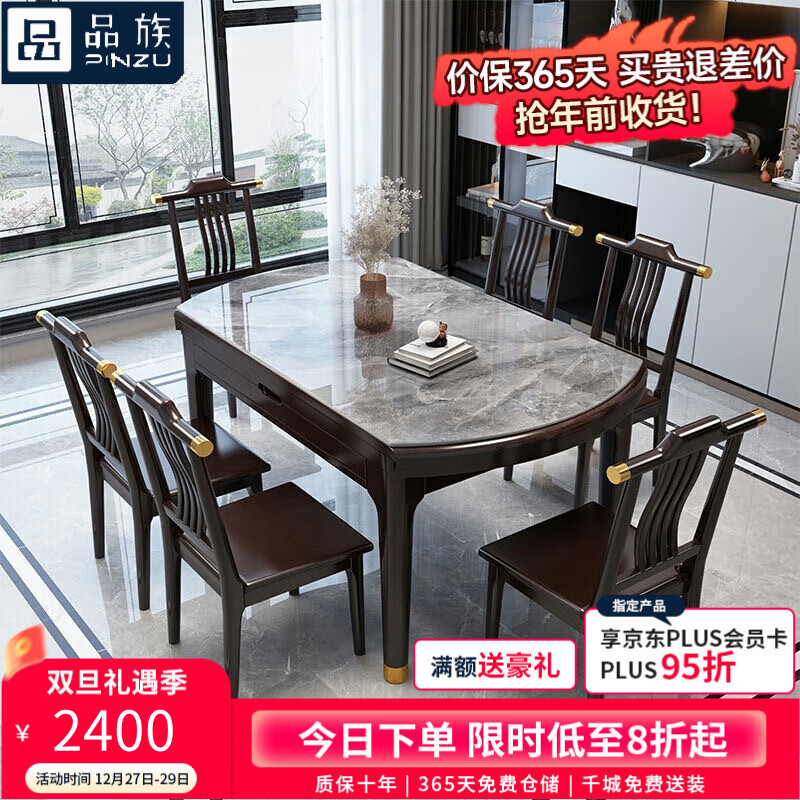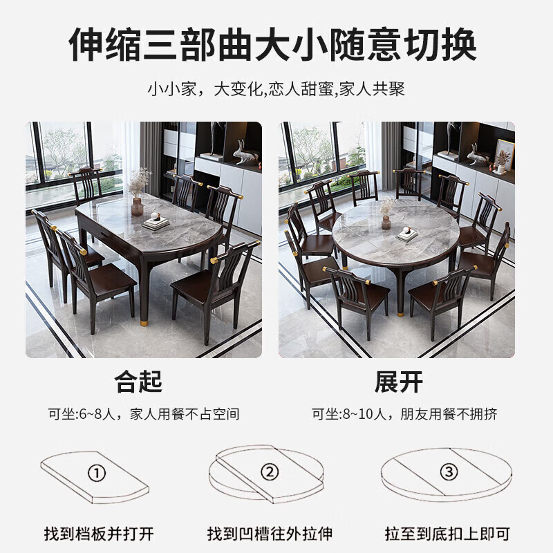 品族 岩板餐桌椅组合伸缩折叠新中式简约小户型家用可变圆桌吃饭桌子价格:3000.00元!