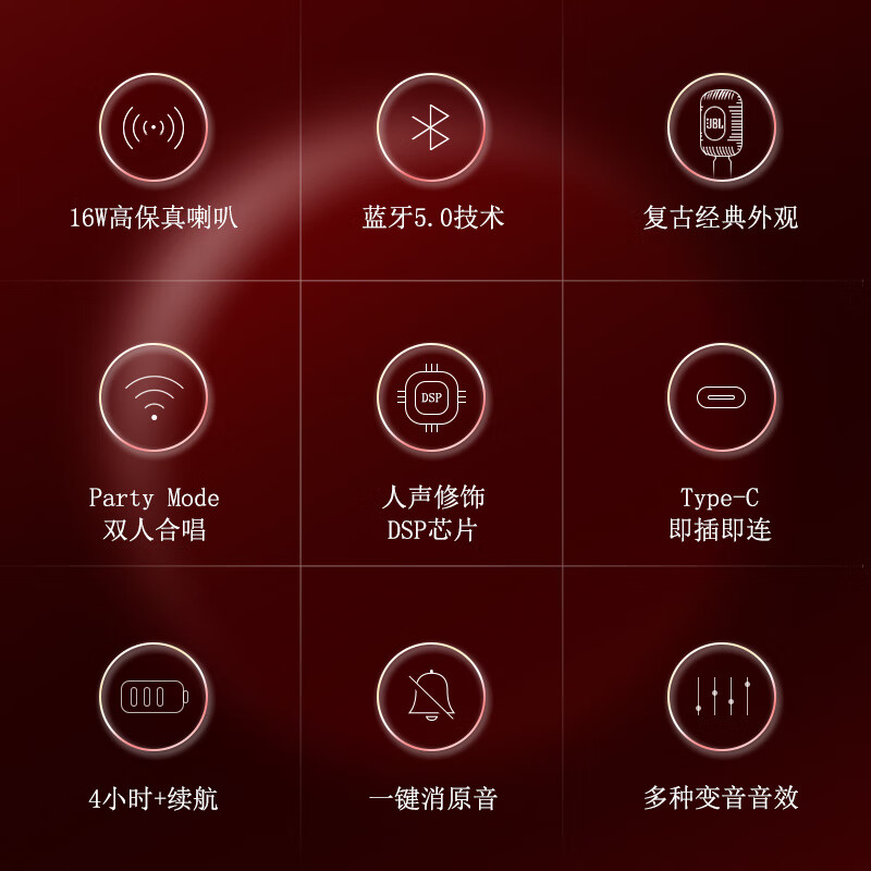3、做工质感:非常细腻音质音效:就是JBL那味儿,很棒灵敏度:很高安装难易:打开就用外形外观:复古,好看其他特色:10种音效送给女朋友的。她很惊喜,说音质很好很好。除了K歌,当蓝牙音箱用也很爽。平时聚会、出游,都是带给大家欢乐的神器。虽然小贵,但也很值得。见识到650的人,都想买。另外,此前买的350也很不错,就是功率要小得多,在室外K歌声音偏小。