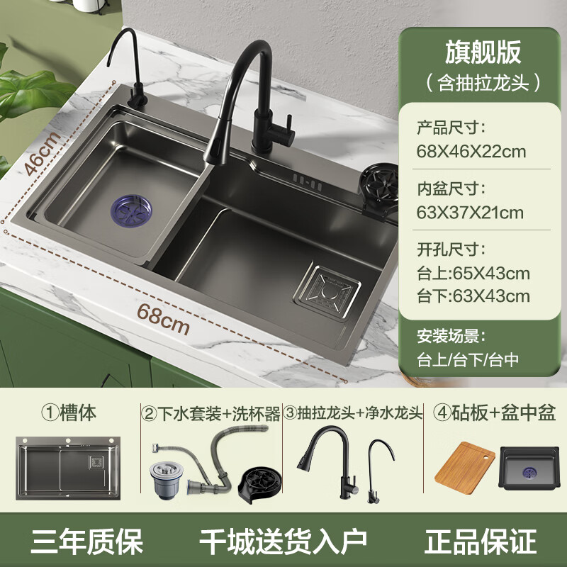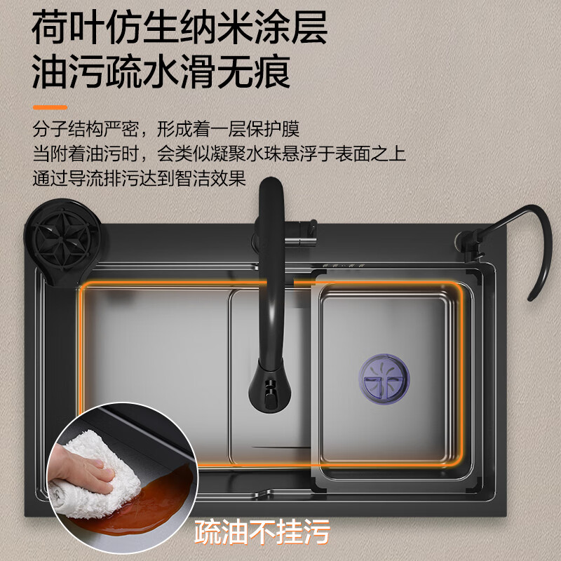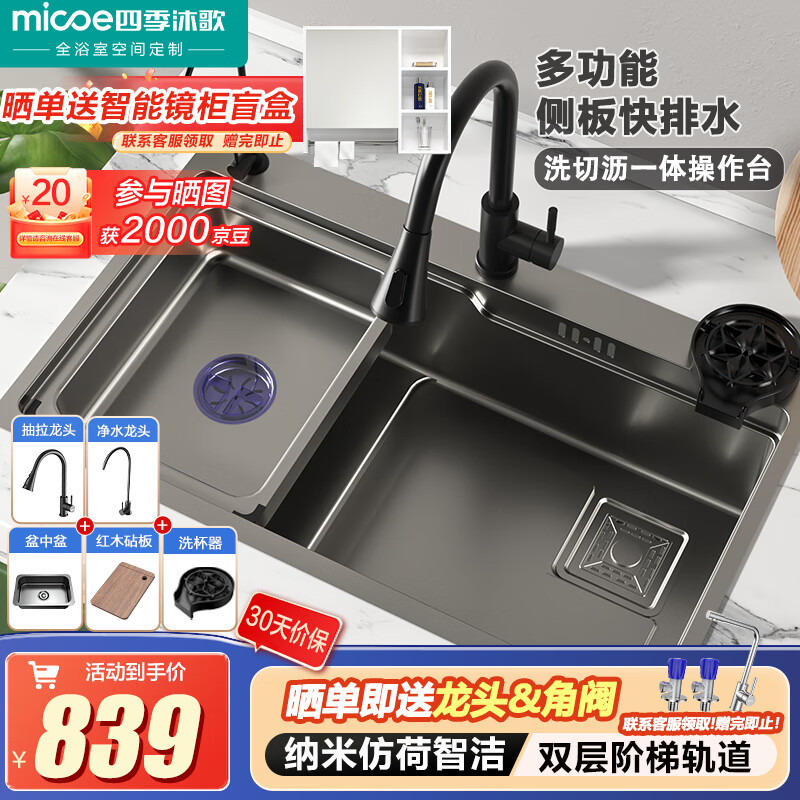 四季沐歌厨房水槽洗菜盆大单槽纳米304不锈钢一体洗碗台下盆多功能阶梯式价格:999.00元!