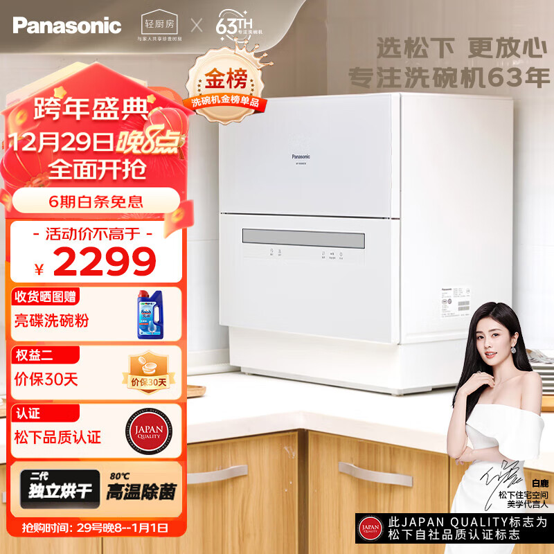 松下(Panasonic)洗碗机台式 家用台上独立热风烘干自动智能刷碗机 80℃高温除菌 小体积大容量 5套一体易安装 二代NP-UW5PH1D价格:2599.00元!