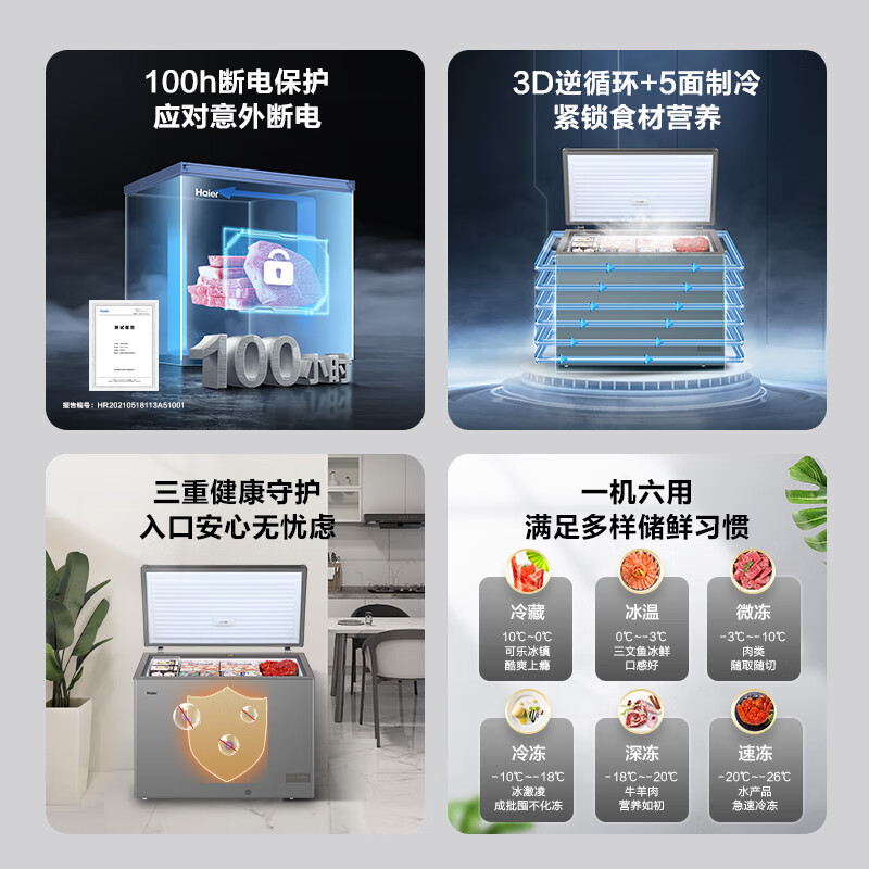 4、海尔(Haier)251升低霜卧式商用家用冰柜商用大容量冷藏柜冷冻柜冰柜家用囤货小冰箱冷柜BC/BD-251HD以旧换新。海尔是老牌子,质量信得过,空间容量好大,昨天终于把我家双门冰箱冷冻仓的东西整理出来了,看着太清爽了,目前使用感觉很好,没啥噪音,很安静。