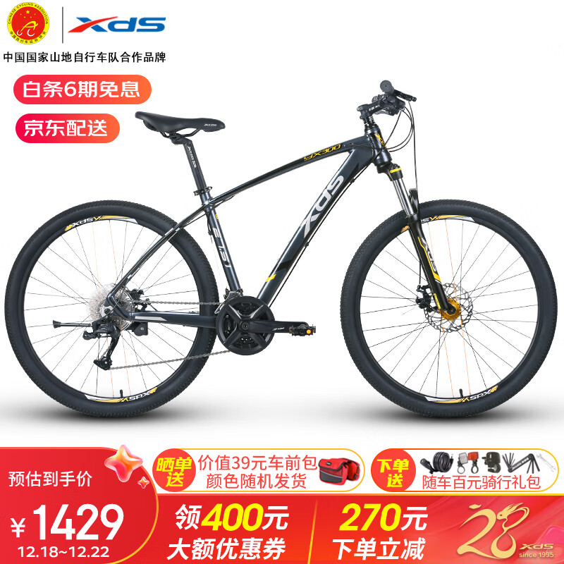 喜德盛山地自行车英雄300运动健身27速锁死前叉机械碟刹 灰黄17.5价格:2099.00元!