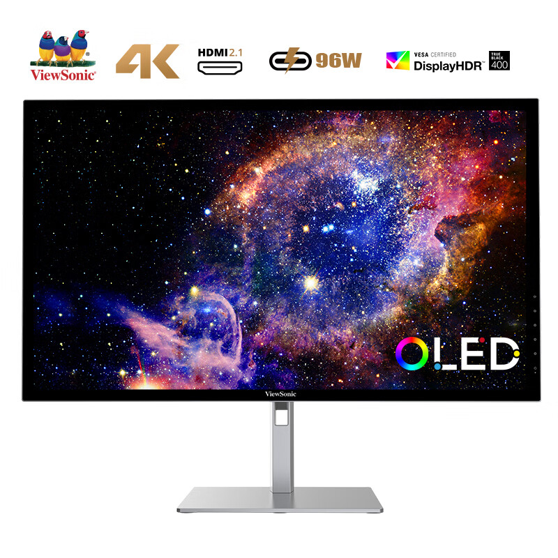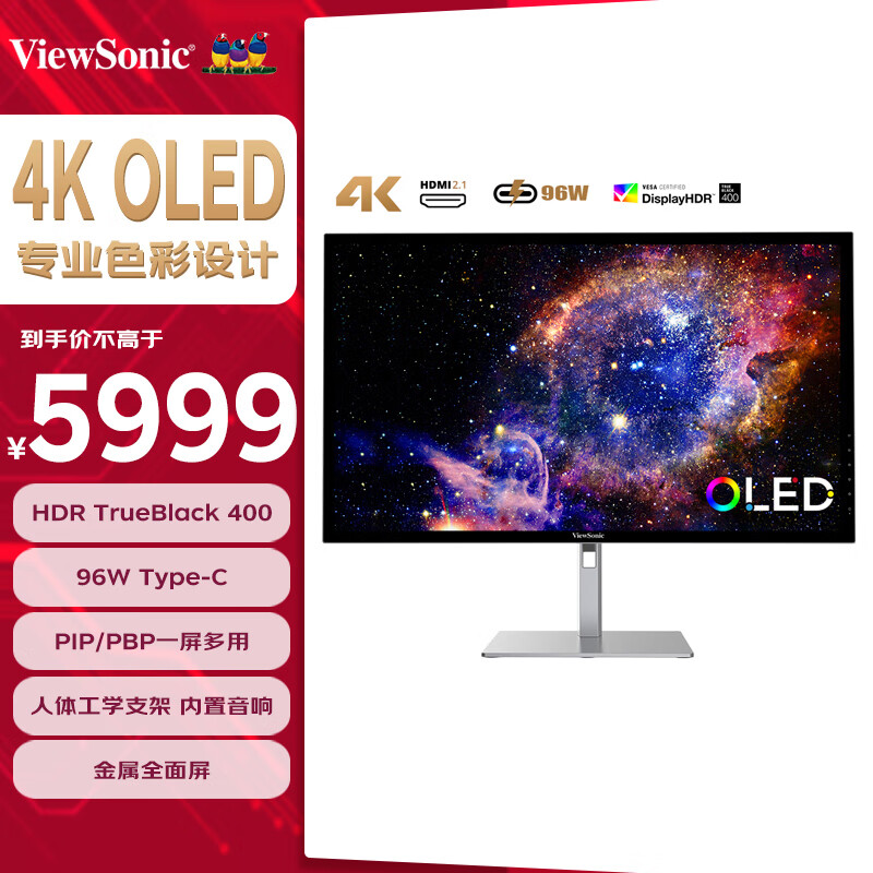 优派27英寸4K OLED 0.1ms HDR400 10bit Type-C96W 99%P3 PIP/PBP 专业色彩设计旋转升降显示器VX2722价格:6499.00元!