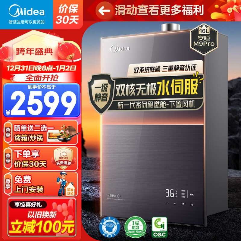 美的(Midea)燃气热水器16升天然气家用强排式一级静音双核无极恒温水伺服下置风机密闭稳燃舱安睡JSQ30-M9 Pro价格:2699.00元!