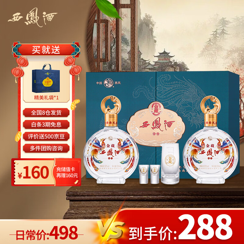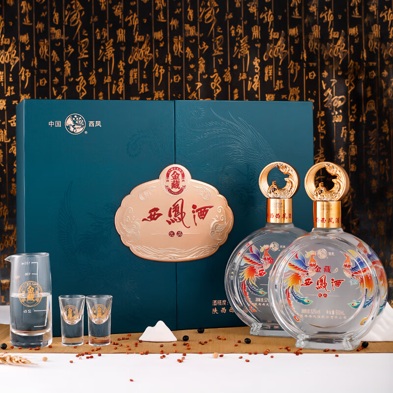 西凤酒 金藏52度陕西纯粮食绵柔凤香型白酒婚宴请送礼物盒装500ml*2瓶价格:288.00元!