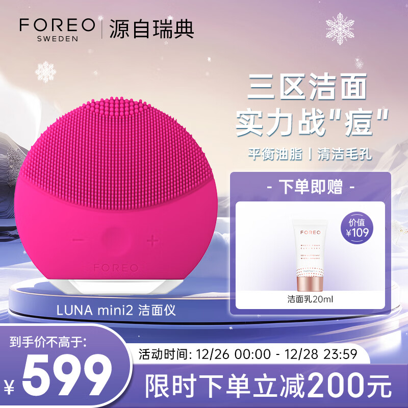 斐珞尔(FOREO)露娜洁面仪LUNA mini2净透洗脸仪电动深度清洁彩妆残留收缩毛孔洗脸神器生日礼物送老婆 樱桃红价格:799.00元!