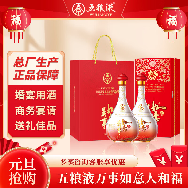 五粮液股份 万事如意人和福 固态法浓香型纯粮食白酒 42度500ml*2瓶价格:629.00元!
