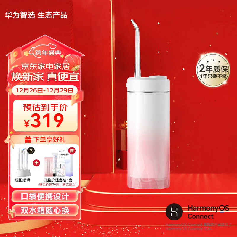 华为智选力博得冰立方冲牙器 圣诞礼物伸缩便携洗牙器水牙线冲洗器 预防牙结石 双水箱 珊瑚粉价格:359.00元!
