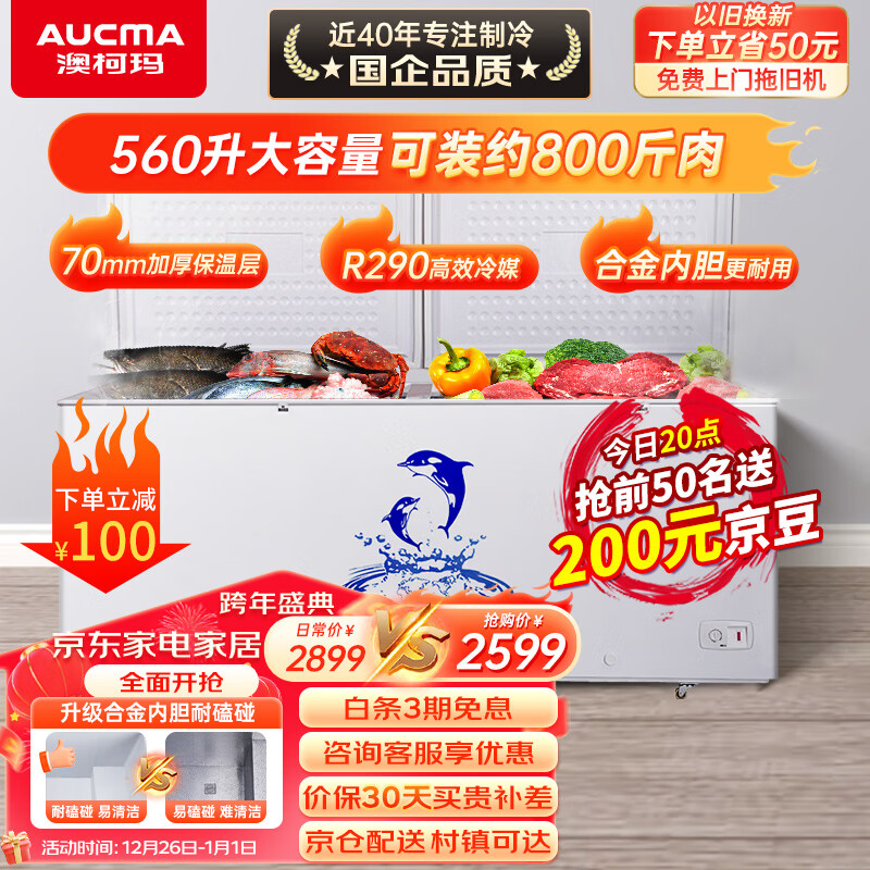 澳柯玛(AUCMA)560升家用商用大容量冰柜 卧式囤货大冰箱 冷藏冷冻转换单温顶开门冷柜 BC/BD-560TC 以旧换新价格:2899.00元!