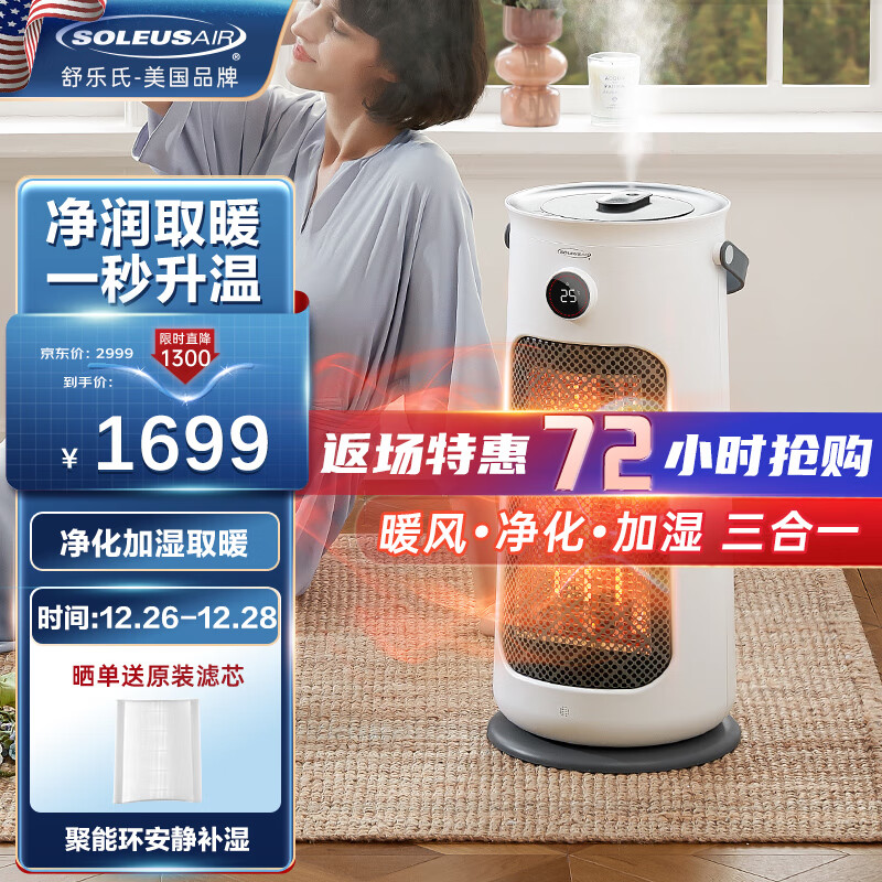 SOLEUSAIR舒乐氏加湿取暖器Nada家用暖风机节能电暖器办公室石墨烯远红外小太阳三合一遥控低躁SLS-JQN1价格:1699.00元!