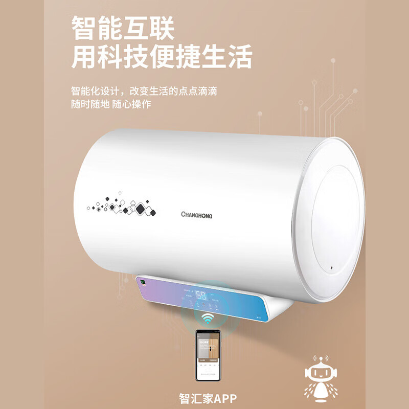 长虹(CHANGHONG)60升电热水器触屏智能预约2.2KW五倍大水量速热节能防电墙六重防护D60D61F(WiFi)价格:679.00元!