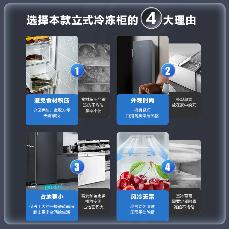 美菱(MELING)208升立式冷冻速冻小型冰柜 家用客厅分区抽屉冷柜风冷无霜一级能效小冰箱 BD-208WPC价格:1698.00元!