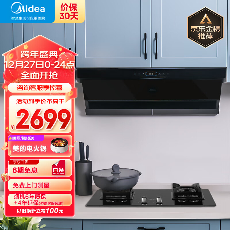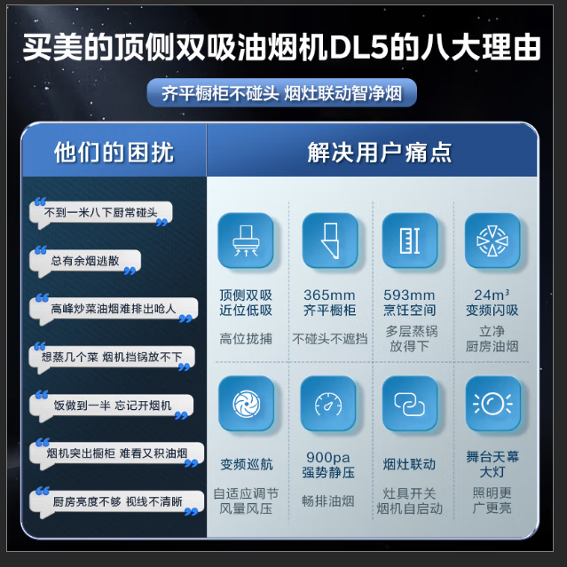 美的(Midea)抽油烟机 家用顶侧双吸 烟灶联动 24风量大吸力 变频 超薄近吸 7字型排油烟机 DL5价格:2699.00元!