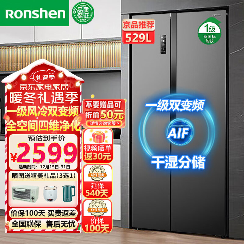 容声(Ronshen)【离子净味系列】529升对开门冰箱一级风冷无霜双变频电冰箱纤薄净味双开门干湿分储价格:2599.00元!