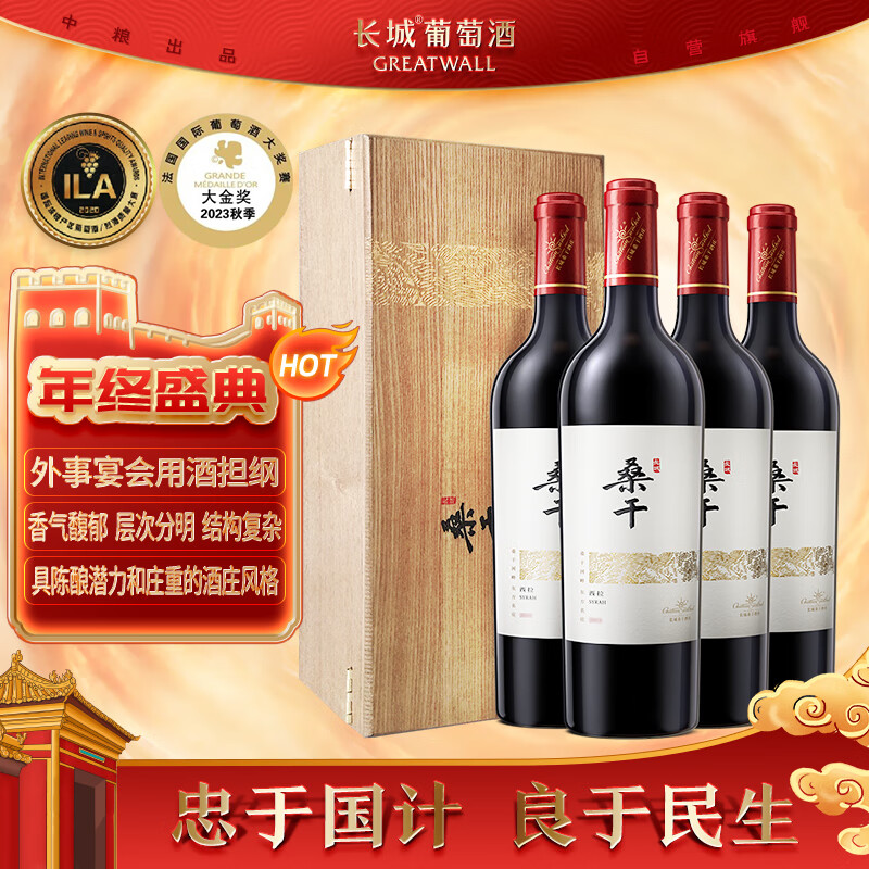 长城 桑干酒庄 西拉干红葡萄酒 木盒 750ml*4瓶 整箱装价格:4232.00元!